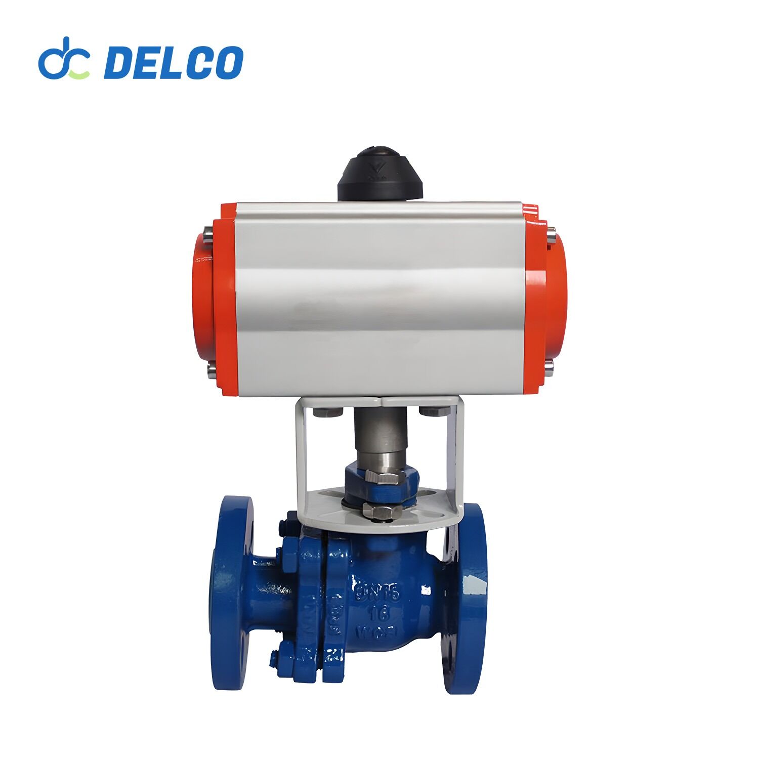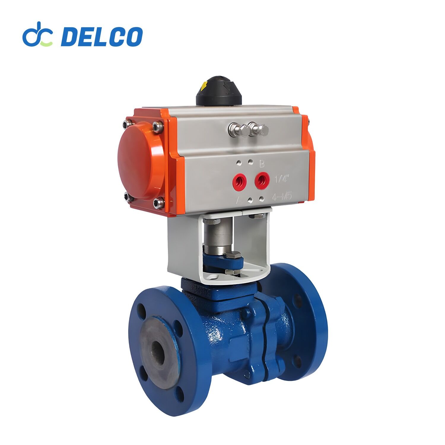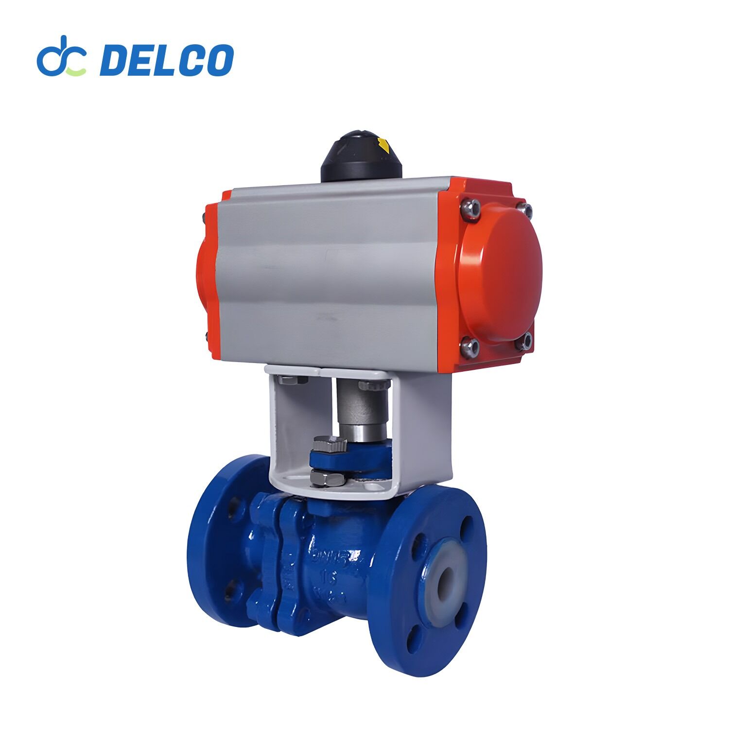 Válvula de bola con revestimiento de flúor y brida DELCO con actuador neumático