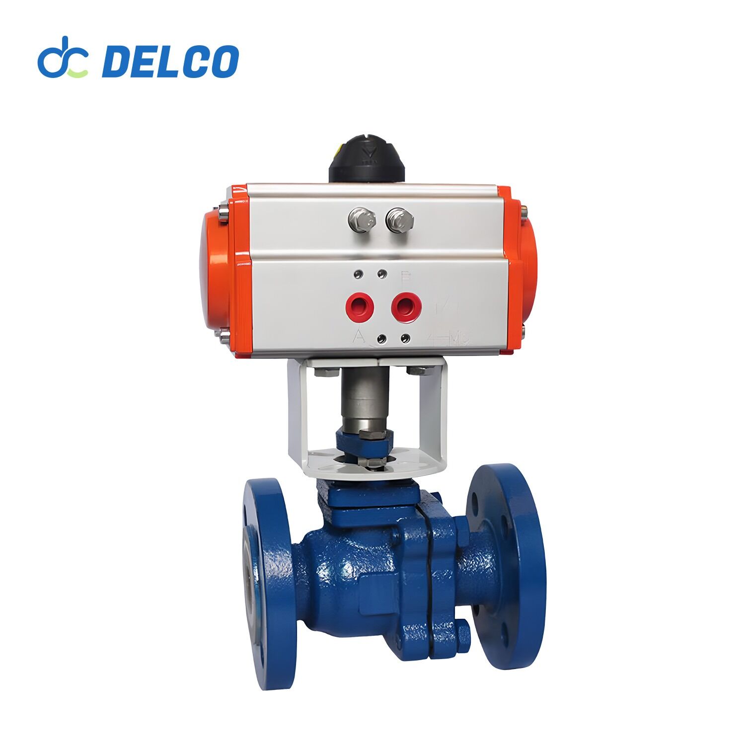 Válvulas de bola con brida y revestimiento de flúor para actuadores neumáticos DELCO - DK66