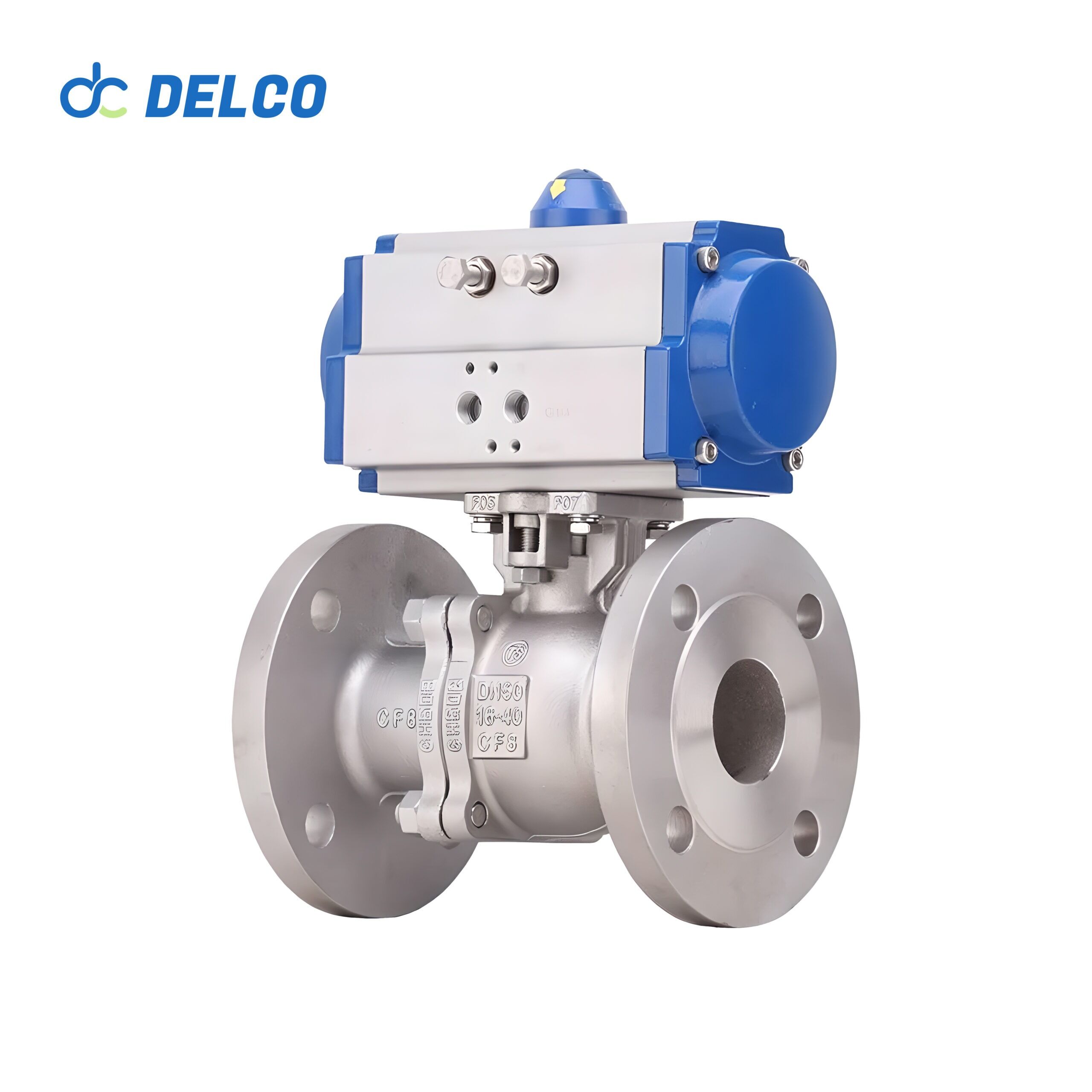 DELCO 2-piece 2-way Pneumatic flange ball valves provide you with flexible and reliable fluid solutions. Flanged ball valve has the advantages of easy installation, easy maintenance, full diameter and large flow. Can be customized to ANSI standard, JIS standard, GB standard or DIN standard according to your piping needs.