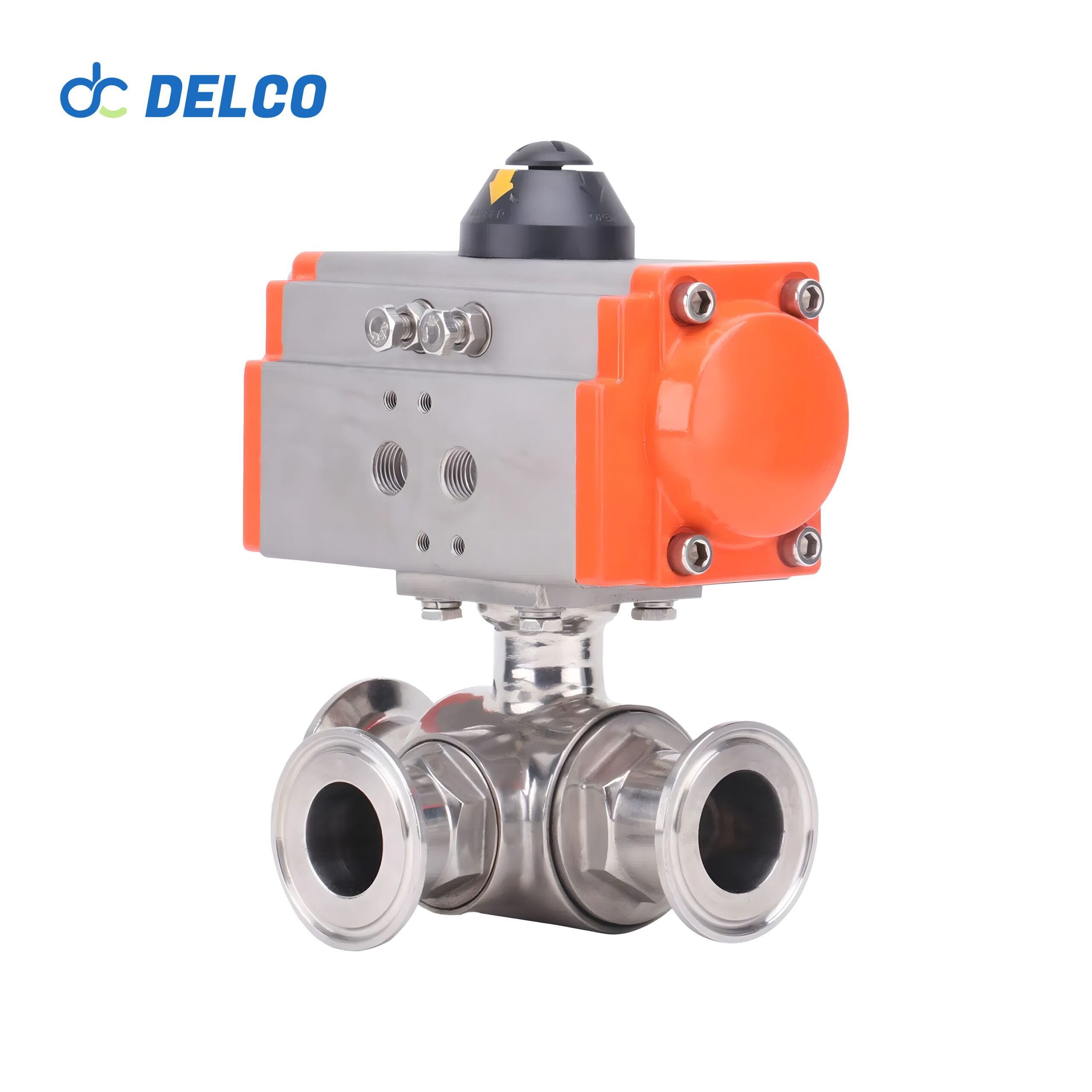 DELCO 3 Way Sanitary Pneumatic Ball Valves Tri Clamp-DK66-3WS